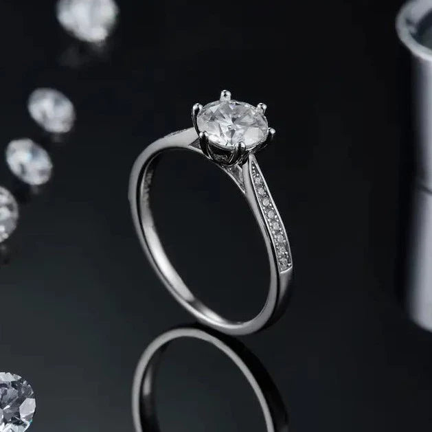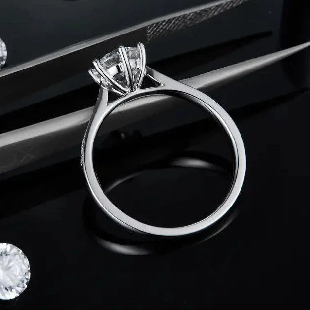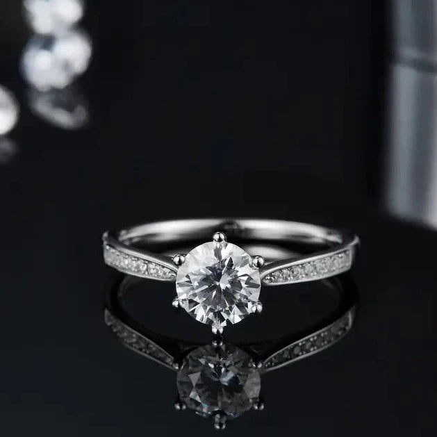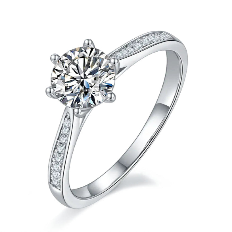 Tapered Pave 1.00ct Moissanite Engagement Ring Set In Sterling Silver