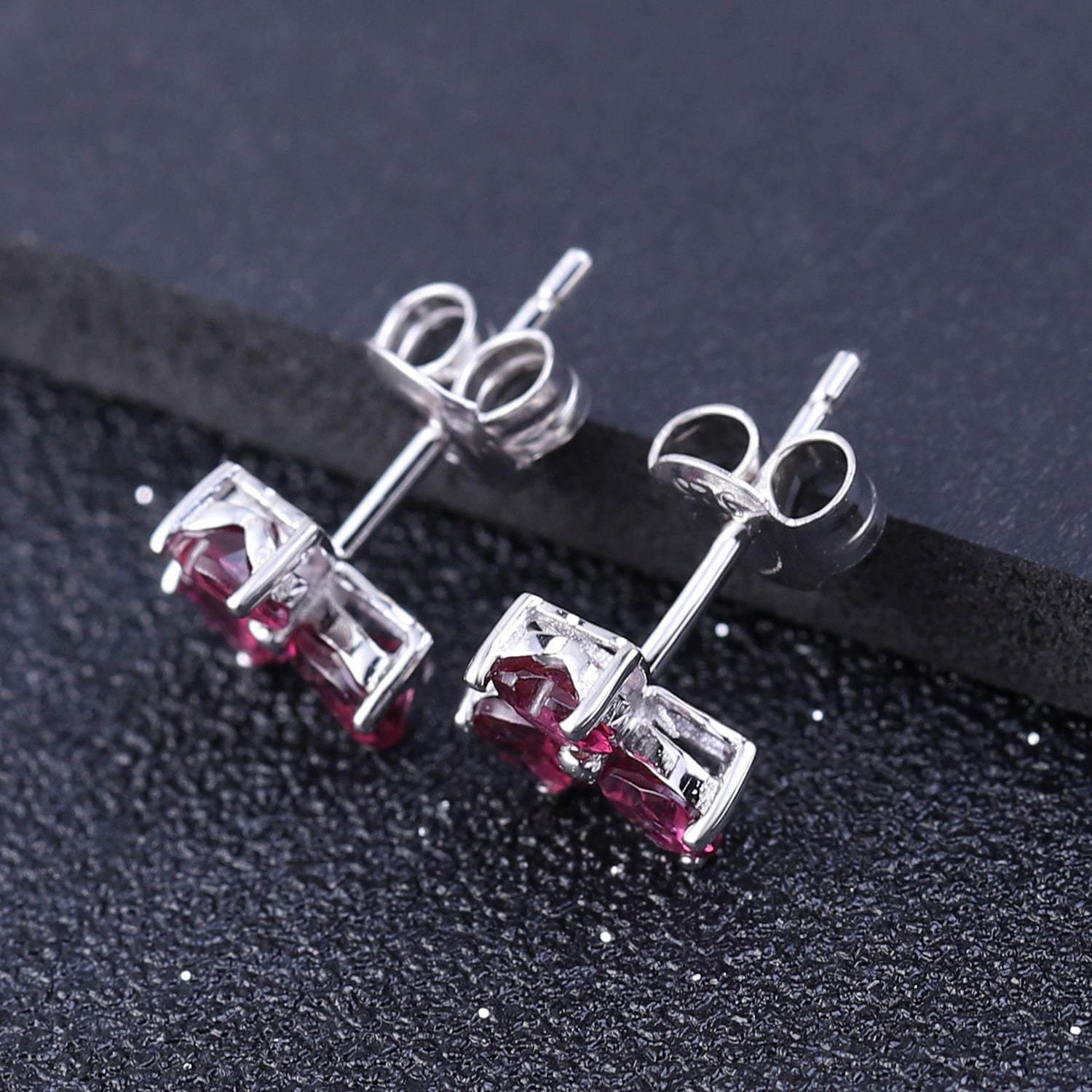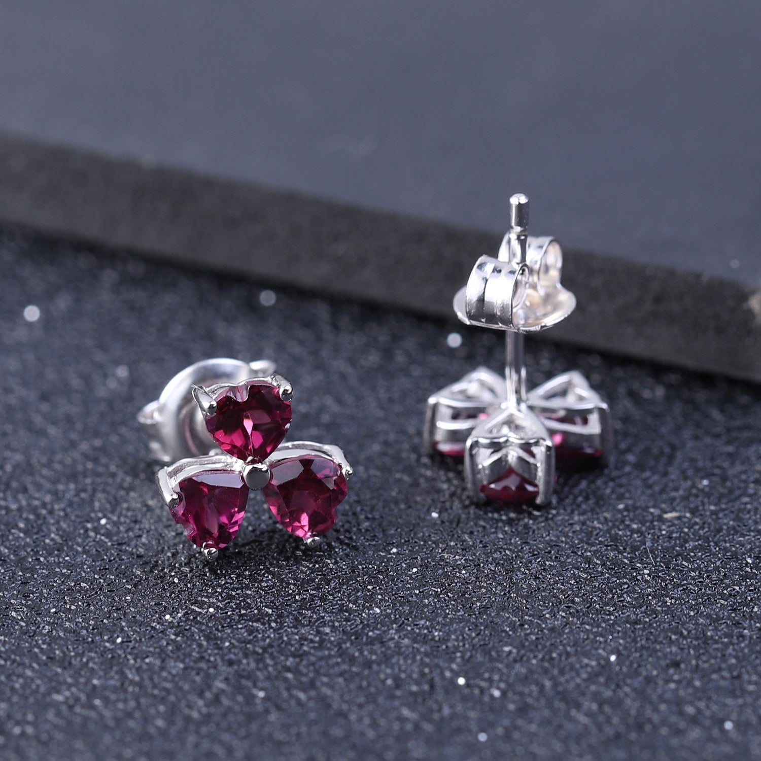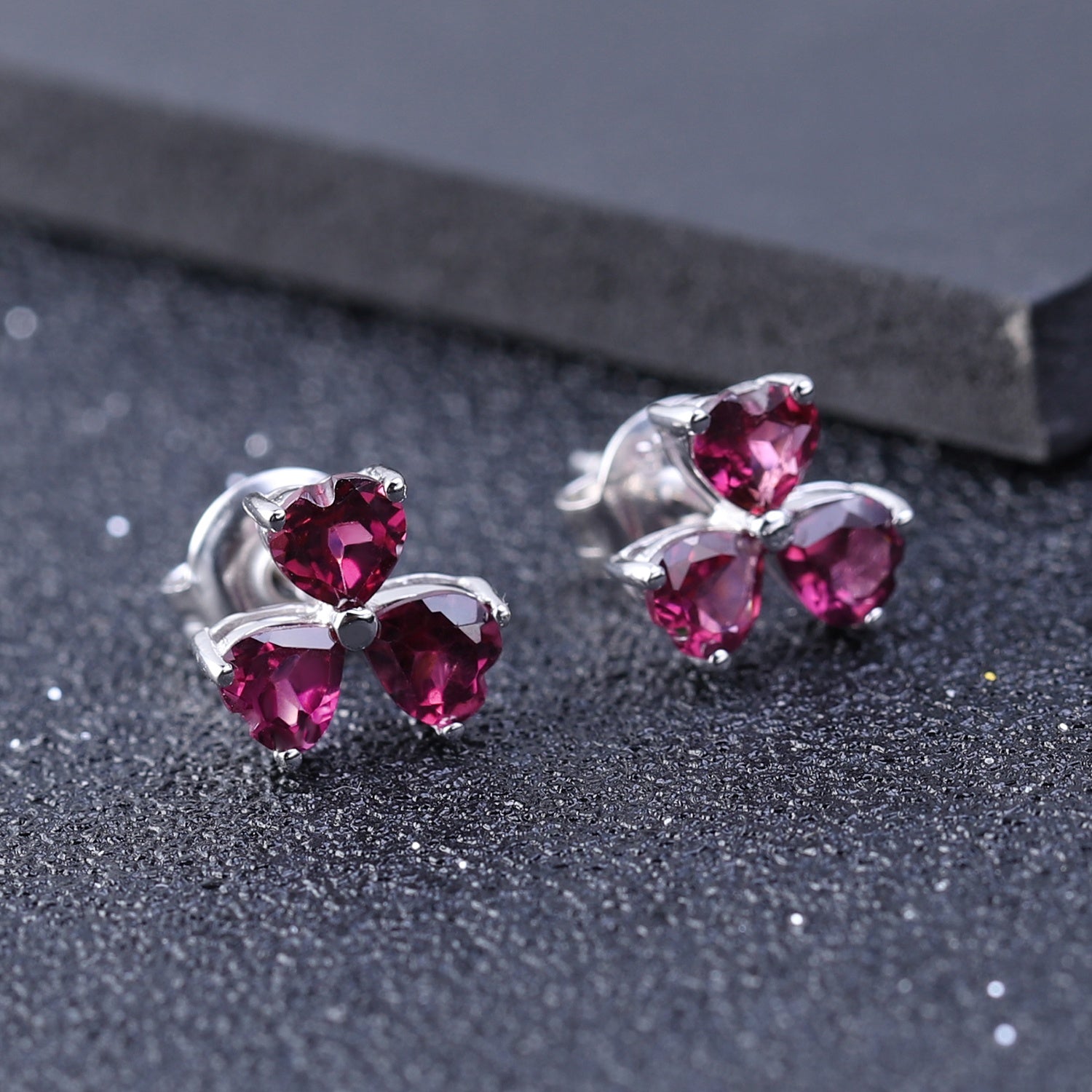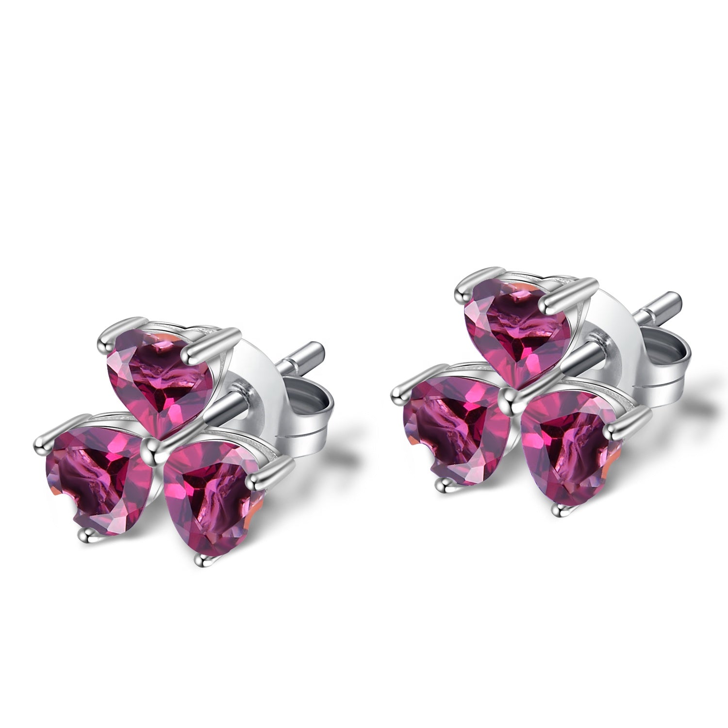Stones: 0.32ct total (4mm each) heart-cut natural Rhodolite Garnet