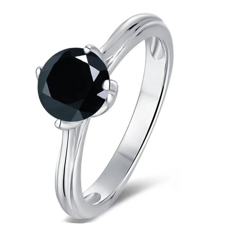 Tulip Solitaire 1.00ct Black Moissanite Engagement Ring Set in Sterling Silver