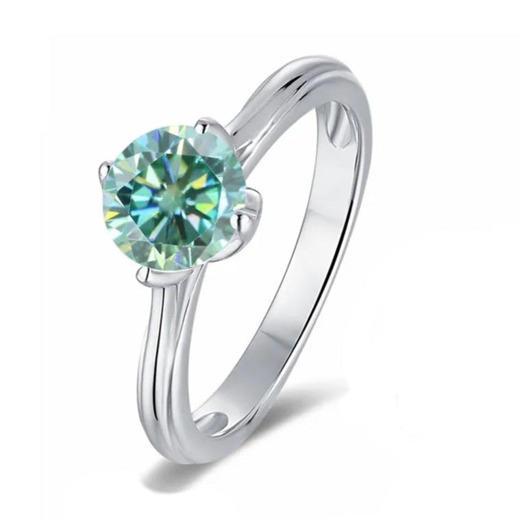 Tulip Solitaire 1.00ct Green Moissanite Engagement Ring Set in Sterling Silver